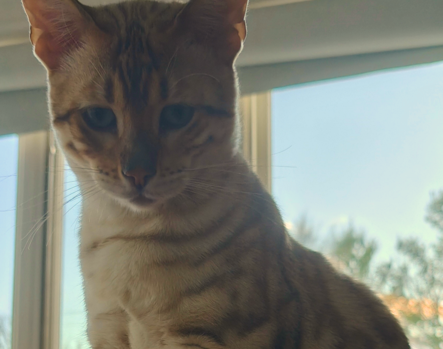 Olympus is the energetic one out of the bunch. He is always at your side with a playful aroma. He is energetic and has a feistiness, but he also loves people. He is very handsome with beautiful blue eyes and a light soft fur. He is bigger and stronger than most cats and he shows a scene whenever he walks with his muscles rippling.